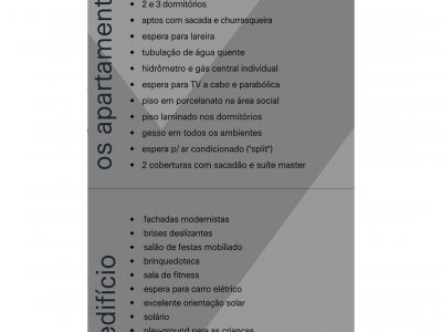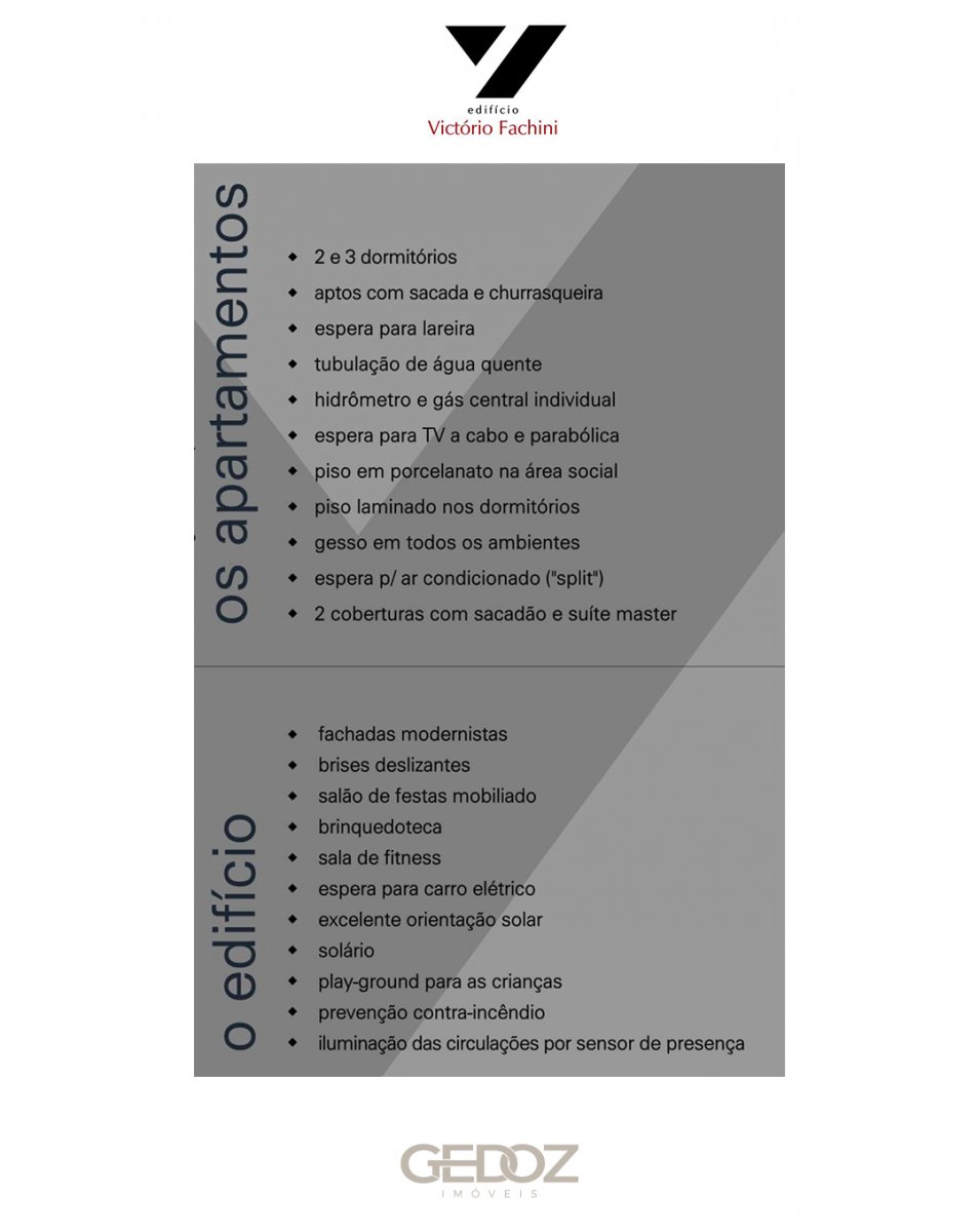 Um investimento ideal para quem prioriza conforto e modernidade. Bem-vindo a um empreendimento que vai além das expectativas! Aqui, a infraestrutura foi concebida para refletir seu estilo pessoal, proporcionando espaços de lazer surpreendentes, arquitetura moderna e um design diferenciado. . 2 e 3 dormitórios 2 coberturas com ampla sacada e suíte master . Salão de festas mobiliado Brinquedoteca Espaço fitness Solário Playground . Edifício Victório Fachini Rua 21 de Abril, 656 . Entre em contato
