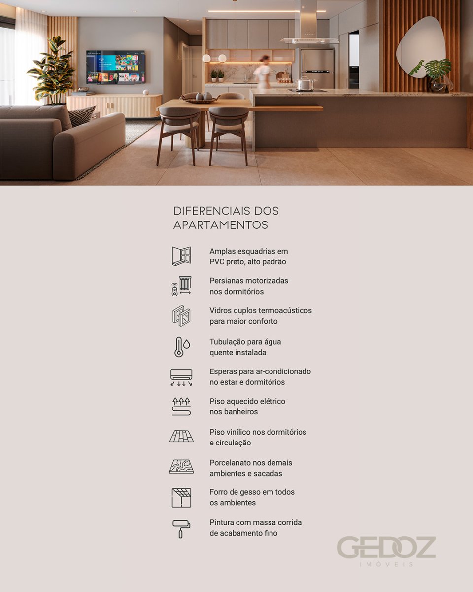 Encontre conforto, modernidade e bem-estar! JOY, apartamentos de 70 a 98 m², pensados para uma vida com mais praticidade. Localizado próximo à ciclovia, o empreendimento une arquitetura contemporânea, áreas de convívio integradas e acabamentos de excelência. . 16 apartamentos 2 e 3 dormitórios, sendo 1 suíte Persianas motorizadas nos dormitórios Piso aquecido elétrico nos banheiros Espaço gourmet mobiliado Varanda aberta integrada ao gourmet Living externo Câmeras de monitoramento nos acessos . 📍 Rua Almirante Barroso, 161 – Centro, Carlos Barbosa – RS